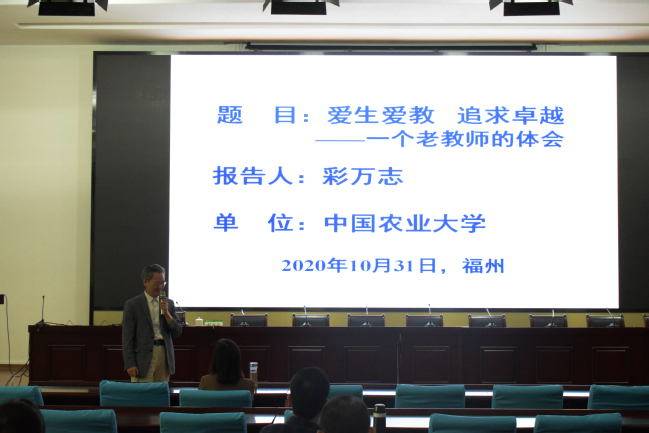 彩万志教授作了题为“爱生重教,追求卓越——一个老教师的体会”的讲座。彩万志教授风趣地从自己的名字、画像、书画、恩师以及中国农业大学的名教授说起,运用大量珍贵的精美照片及丰富的资料,以六个“心”,即“爱心”“静心”“耐心”“用心”“恒心”“精力”,结合自己多年从教经历及深受学生好评和爱戴大量事例,讲述了作为一名高校教师在指导学生、编写教材、搜集资料、组织教学、教研结合、课程思政等方面所应具备的品质素养,为学院积极推进师德师风建设、全面落实立德树人根本任务,上了一堂生动的现场指导课和教学演示课。