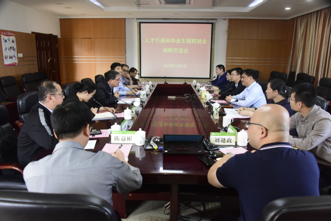 11月3日,福州市委组织部副部长林舫,市委人才办执行副主任陈剑雄,市人社局总会计师倪馨,市人才集团总经理邹勇志、副总经理潘朝强等一行来校调研交流人才引进和毕业生留榕就业工作。校党委副书记庄祥生,人事处、学生处、金山学院等单位负责及相关同志参加座谈会。