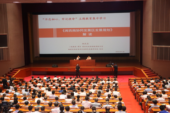 郑庆昌为厦门市党员干部作“不忘初心、牢记使命”主题教育集中学习专题辅导报告,题为《闽西南协同发展》