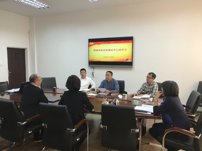 11月4日上午,管理学院党委理论学习中心组专题学习研讨党的十九届五中全会精神。会议由院党委书记张开晃主持,院党委理论中心组成员参会。