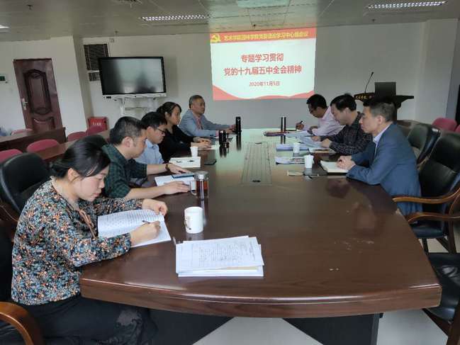 11月5日上午,艺术学院园林学院党委书记陈为德主持召开学院党委理论学习中心组会议,传达学习党的十九届五中全会精神,研究部署学院贯彻落实举措。