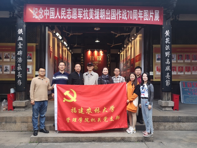 11月4日下午,管理学院机关党支部开展主题党日活动,全体党员前往安民巷53号新四军办事处旧址,参观“纪念中国人民志愿军抗美援朝出国作战70周年图片展”。