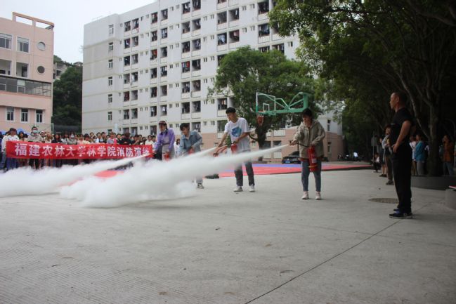 在演练前,林学院学生会督导部认真制定消防演练活动方案,明确任务和要求。正式开始时,工作人员快速集合,按警铃、放烟雾弹。警报一响,学生迅速、有序地到达指定地点。陆语和雷美玲进行点评并向各级学生介绍一些必备的消防知识,并示范如何使用灭火器灭火。演练过程中,同学们严肃对待,紧张有序,认真学习灭火知识。本次活动通过组织学生开展消防演练,提高学生遇到火灾、突发事件的自救、互救的意识和能力。