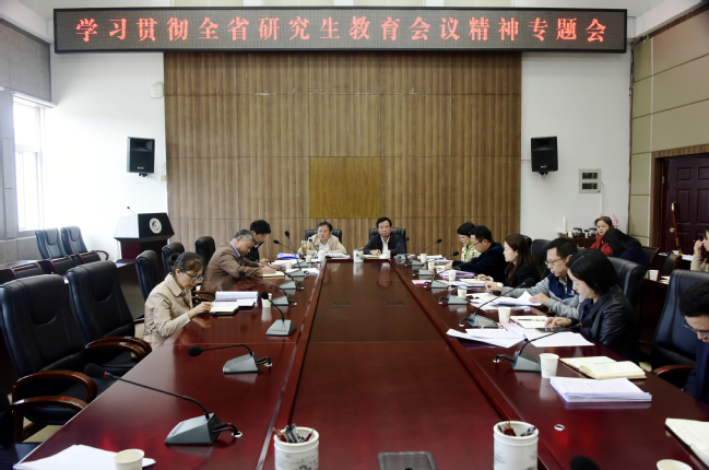 会上,研究生院传达了全省研究生教育会议精神,汇报了近期研究生教育改革调研情况、首届研究生科技周活动方案和硕士生招生考试工作情况。与会人员围绕深化研究生教育改革,推进研究生教育高质量发展的主题,进行深入地交流研讨,并就推进研究生招生考试和科技周活动等重点工作,提出意见和建议。