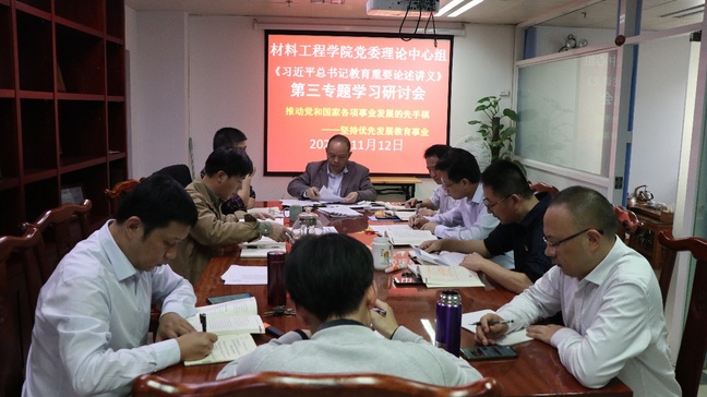 11月12日下午,材料工程学院党委理论学习中心组召开学习贯彻习近平总书记教育重要论述第三场专题学习研讨。会议由学院党委书记林豪森主持,学院党委理论学习中心组成员参加会议。