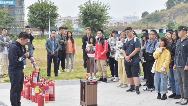 演练前,黄事煜为同学们讲解了火灾现场的应急处置方案及安全逃生方法,介绍了灭火器的构造及注意事项,并对灭火器的使用进行了现场操作示范。现场同学们认真倾听、仔细观看,在保卫办人员指导下,同学们十分沉着冷静、熟练有序地使用灭火器进行灭火练习。