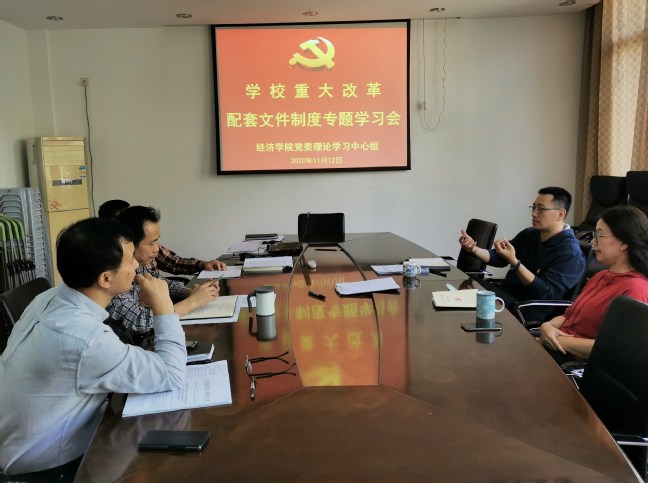 11月13日下午,经济学院党委理论学习中心组专题学习学校新出台的《学院目标管理考核办法(修订)》《教师系列职务任职条件规定》《师德师风和意识形态测评考核实施细则》等改革配套文件制度,学院党委书记林栋主持会议。