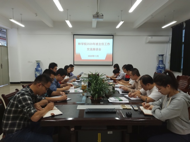 11月19日下午,林学院在诚智楼A206会议室召开2020年班主任工作交流座谈会。院党委副书记李梅生、辅导员班主任代表出席了本次会议。
