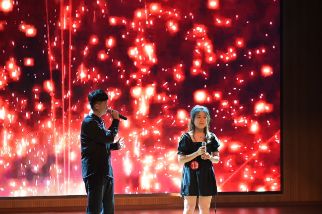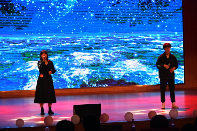 会场气氛热烈,选手们在台上引吭高歌、深情演绎,观众们在台下纷纷喝彩、掌声不断。一曲曲动听的旋律给师生带来了一场精彩绝伦的听觉盛宴。来自阡陌艺术团舞蹈队、歌唱队、礼模队和话剧社的同学也带来了精彩的文艺节目,用扎实的才艺功底和充满活力的青春朝气欢迎2020级新生加入阡陌家园。