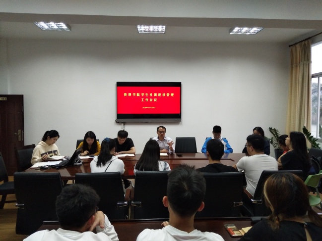 11月20日,管理学院召开学生社团建设管理工作会议。学院党委副书记陈建辉,全体辅导员以及学院各学生社团负责人、各文体队队长近三十人参加会议。