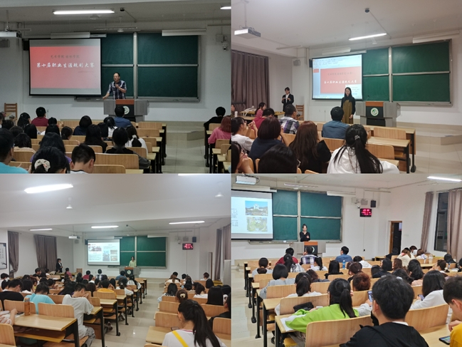 11月18日,艺术学院园林学院于旗教202室举办“规划自我,走出精彩人生”职业生涯规划大赛决赛。本次比赛邀请了旗山校区团学工作办公室副主任方万春、材料工程学院辅导员郭炳春、计算机与信息学院辅导员尤达担任评委,2019级辅导员季平及部分本科生到场观看比赛。