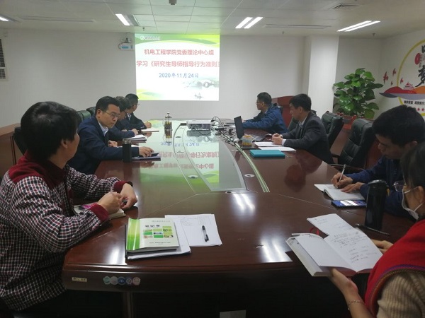11月24日上午,机电工程学院党委理论中心组全体成员在718会议室,认真学习教育部书发布的《研究生导师指导行为准则》以及学校相关文件精神。研究生辅导员和教学管理人员参加了会议。会议由院党委书记池有忠主持并作专场解读。