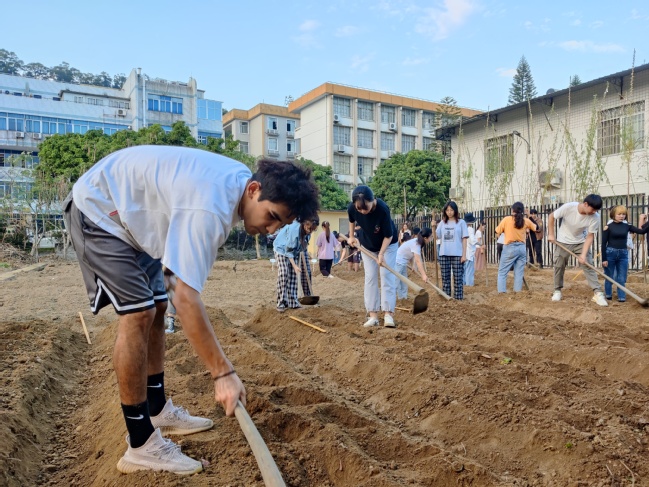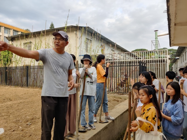 在实践开始之前,蔡来龙老师为同学们详细讲解了此次实践课程的操作规范和注意事项,并重点讲授了种植密度和后续水肥管理等栽培技术,几位带队老师相继补充了实践过程的要点。同学们在熟悉了操作规范,并了解注意事项后,迫不及待拿起锄头,实践场面热火朝天。