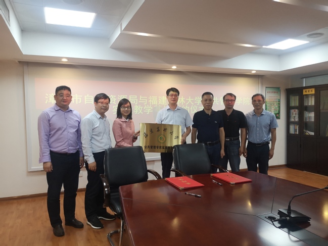 周毕芬代表学院与漳州市自然资源局签署共建基地协议,阮晓菁向漳州市自然资源局授予基地牌匾。