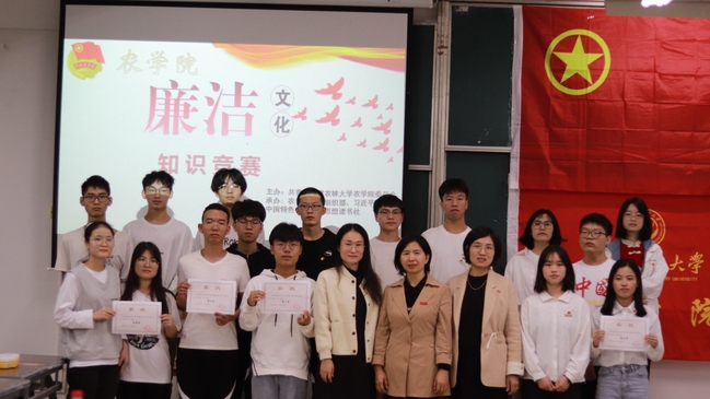 11月28日,农学院在田家炳楼105教室开展“廉洁文化”知识竞赛。本次活动由农学院团委主办,农学院团委组织部、习近平新时代中国特色社会主义思想读书社承办。农学院党委副书记林素文、团委书记林彬彬、辅导员卢艺彬和各团支部代表到场观看比赛。学院本科生、研究生共19支队伍参与竞赛。