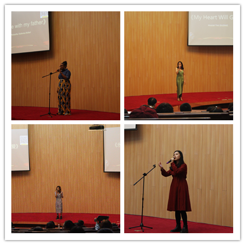 经过初赛选拔,16位中外学生入围本次决赛。决赛分主题演唱和十佳对抗赛两个部分。比赛在初心组的《我》中拉开了序幕,选手们深情演唱,各展风采,传递着青年人激扬青春、牢记使命、砥砺前行的昂扬风貌。越南留学生、尼日利亚留学生带来的《Dance with my father》《my heart will go on》精彩演绎更是博得现场阵阵掌声。经过第一轮的紧张比赛,10位选手进入对抗赛环节,现场气氛愈加热烈, 优美的歌声、旋律声为梦想插上了翅膀。