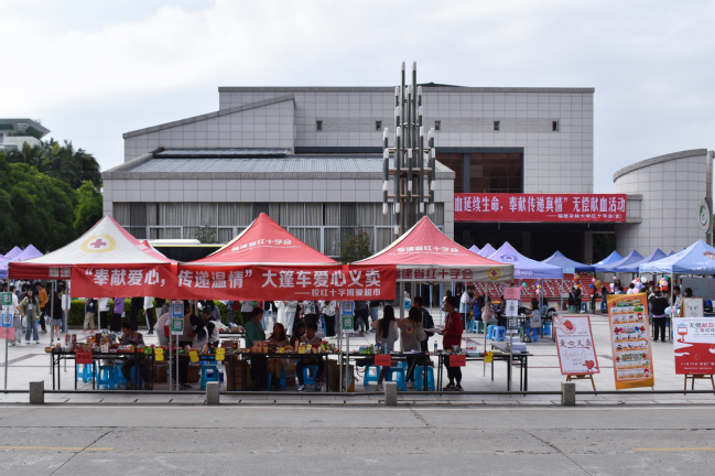 无偿献血和大篷车义卖活动现场