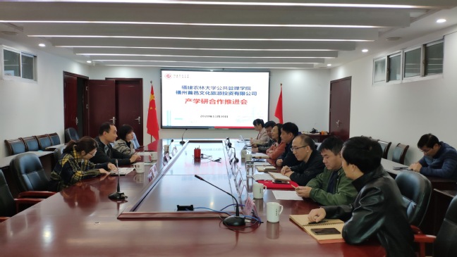 11月30日上午,公共管理学院在东苑10号楼512会议室召开产学研合作推进会,福州首邑文化旅游投资有限公司副总经理董炳强一行3人,学院党委书记曾起郁、副院长阮晓菁与学院部分教师、艺术园林学院部分教师参加会议。