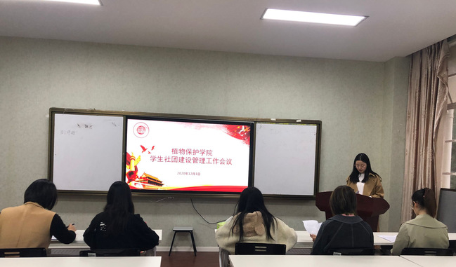12月1日下午,植物保护学院在博学楼708召开学生社团建设管理工作会议。学院团委、学生会指导老师和各学生社团负责人参加会议。