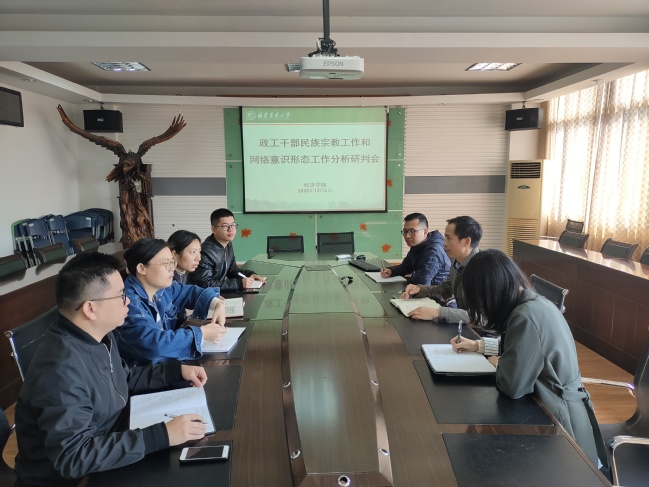 12月2日下午,经济学院在经管楼502举行政工干部民族宗教工作专题学习和网络意识形态分析研判会议。学院全体辅导员参加会议,会议由学院党委副书记李健英主持。