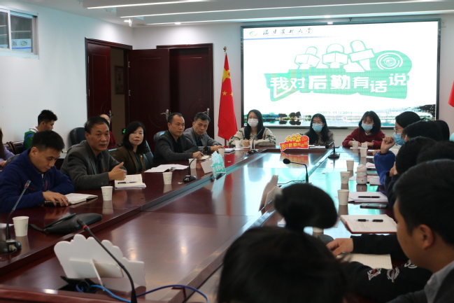 李芳辉在开场白中指出,后勤管理部门承担着为师生供给优质后勤服务的重任;后勤管理处立足服务育人,坚持育人先育己,开展“我对后勤有话说”活动,倾听师生对后勤工作的意见或建议,旨在增进相互理解与支持,共同促进后勤工作高质量发展。他简要介绍了本期主题活动的主要目的,希望老师同学畅所欲言,多提些合理的工作建议,以帮助提高后勤服务质量。