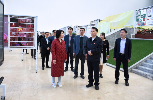 宣讲前,严金静书记现场察看了旗山校区餐厅,并参观了艺术园林学院师生作品展。
