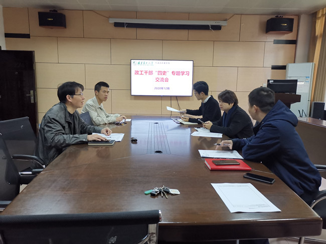 12月3日上午,资源与环境学院在博学楼210会议室开展政工干部“四史”专题学习交流会,学院党委书记童庆满、副书记修新田,以及全体辅导员参加学习交流。