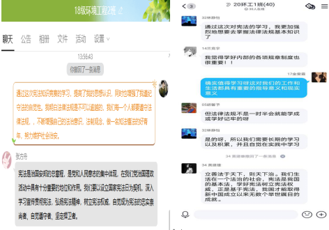 学生们通过教育部全国青少年学习宪法普法网的六个专题学习与练习,最终进行答题完成综合评价。同时,各个班级团支部组织同学进行宪法知识学习交流讨论活动。
