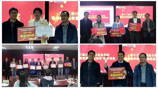 经激烈角逐,计算机基础教研室刘秀玲老师荣获一等奖,计算机科学与技术系严金妹、网络空间安全系柳晓龙、公共数学教研室吴爱迪3位老师荣获二等奖,公共数学教研室黄红星、电子信息工程系薛岚燕、软件工程系李南、统计系滕忠铭、数学系刘蓉5位老师荣获三等奖;电子信息工程系谢秀娟、陈秋凤,公共数学教研室沈群,计算机基础教研室刘秀玲,计算机科学与技术系方艳,网络空间安全系黄日茂6位老师荣获优秀奖;计算机基础教研室荣获集体荣誉奖。