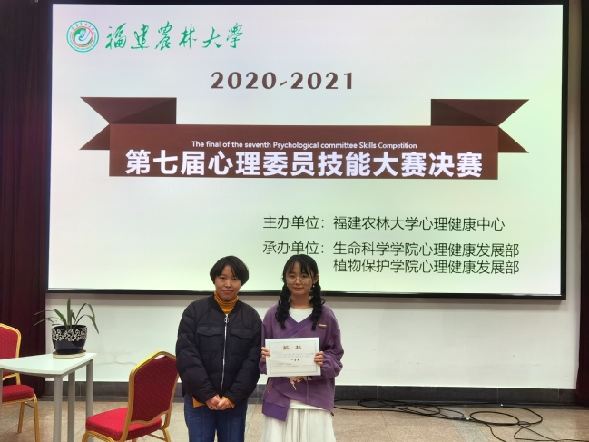 12月6日晚,我校第七届心理委员技能大赛决赛在校多功能厅举办。本次比赛以“健康生活,从‘心’开始”为主题,由学校心理健康中心主办,生命科学学院心理健康发展部和植物保护学院心理健康发展部承办。大学生心理健康指导中心张露老师、马克思主义学院林金凤老师、资源环境学院林婉玲老师担任教师评委,公共管理学院李焓嫣、林学院刘地以及管理学院(旅游学院)陈春钗担任学生评委。