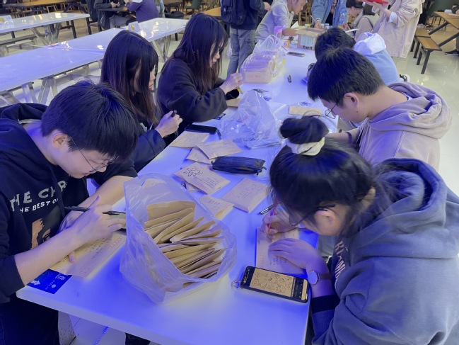 12月2日中午,志愿者们来到考研考公自习教室,为即将考研考公的学长学姐送上隔音中性笔、橡皮、书签等实用的小礼物,并献上写有同学们祝福寄语的信封,为他们的梦想助力。