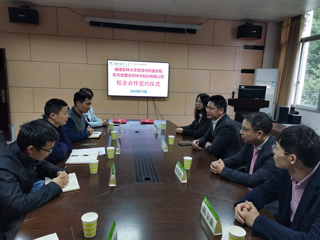 12月8日下午,资源与环境学院与航天宏图信息技术股份有限公司在博学楼210会议室举行院企合作签约仪式。航天宏图信息技术股份有限公司福建省办事处总经理潘宁、销售总监曾星明、项目经理陈宇雄和技术经理尤玉雯,资源与环境学院党委副书记修新田、自然资源信息系主任范协裕、团委书记张锦艳、辅导员参加签约仪式。签约仪式由修新田主持。