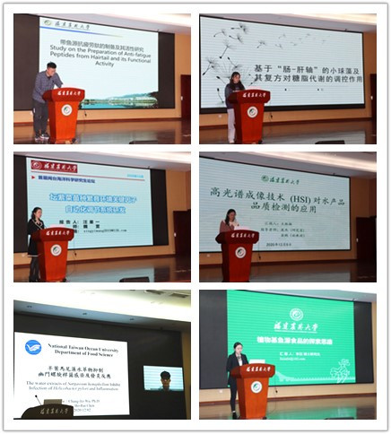 论坛上,上海理工大学艾连中教授作了题为“植物乳杆菌AR113的研究”的学术报告;中科院上海营养与健康研究所武爱波研究员做了题为“食品中镰刀菌、链格孢菌等真菌毒素安全性评价与污染控制”的汇报;台湾海洋大学吴彰哲教授介绍了“藻类多糖于保健食品的开发与应用”;上海交通大学方亚鹏教授分享了“基于食品胶体的减盐降糖技术研究”;浙江大学求是青年学者陆柏益教授介绍了“食用花卉抗衰老功效机制研究及产品开发进展”;台湾保健食品学会副秘书长陈亿乘教授介绍了“减缓认知能力退化的鸡蛋系带水解物开发”;我校陈新华教授讲述了“农用深海微生物筛选、潜力评价与利用”;台湾辅仁大学蔡宗佑教授分享了“益生菌发酵豆奶应用于改善高血压及其伴生血管性失智症之探讨”;我校食品科学学院院长庞杰教授讲述了“魔芋葡甘聚糖网络结构及其凝胶功能化”的最新研究进展;张怡教授阐述了“莲子抗性淀粉结构特性及益生作用的研究”;肉食品安全生产技术国家重点实验室副主任张志刚研究员介绍了“姜黄素-β-环糊精光动力抗菌膜综合性能及其在猪肉保鲜中的应用”。