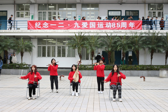 12月9日上午,开云网页版在创新楼前开展了纪念“一二·九”运动八十五周年快闪活动,校大学生艺术团带来的西洋乐合奏《我和我的祖国》和民乐合奏《保卫黄河》将课间的气氛瞬间点燃,团员们用歌曲缅怀历史,抒发对党和祖国的热爱之情,引得同学们纷纷驻足观赏。