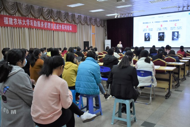 为了进一步加强后勤员工队伍建设,不断规范员工礼仪服务行为,提升服务技能,展现优良形象,12月10日下午,后勤管理处特邀和协(福建)物业公司客服主管吴东滟做客第五期后勤服务管理技能提升培训班,为后勤处员工讲授后勤服务礼仪规范。
