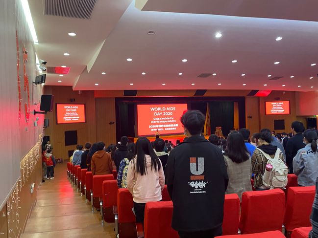 12月11日晚,在旗山校区大报告厅进行防艾电影展播。活动现场秩序井然,同学们在入口处佩戴好口罩和红丝带,有序地测量体温。进入报告厅后在签到处工作人员分发防艾手册,随后同学们隔位就坐,并认真观看了电影《达拉斯买家俱乐部》。电影结束后,主持人带领同学们进行了防艾宣誓,倡导我校师生积极行动,消除歧视。