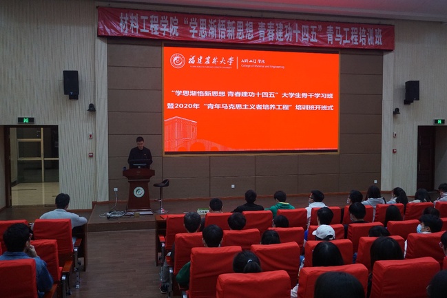 12月11日晚,材料工程学院“学思渐悟新思想 青春建功十四五”大学生骨干学习班暨2020年“青年马克思主义者培养工程”培训班在旗山校区小报告厅开班。学院学生党支部、团委、学生会、研究生会的全体学生党员和骨干200余人参加了学习。