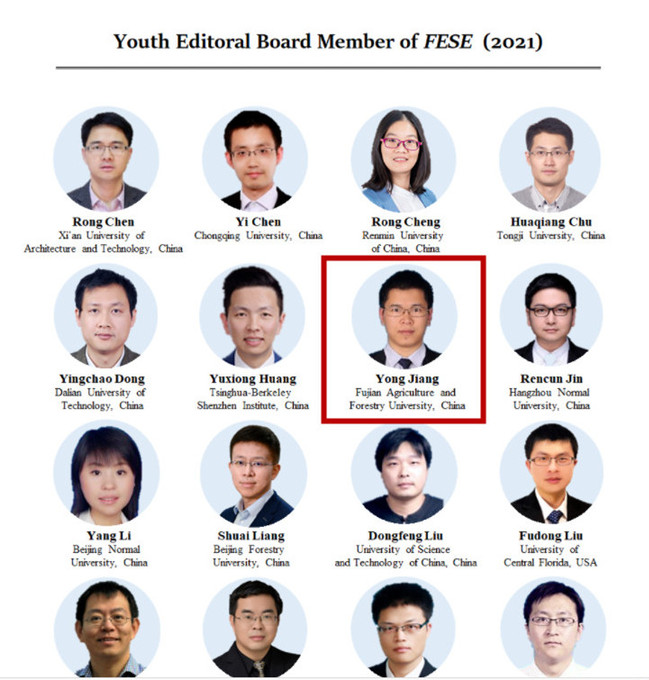近日,国际高水平期刊FESE(Frontiers of Environmental Science & Engineering)发布首届FESE青年编委名单,资源与环境学院蒋永老师入选。