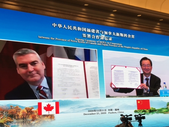 福建省与加拿大新斯科舍省省长线上签署友城结好协议书