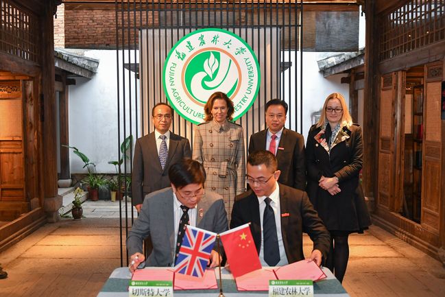 12月21日下午,在榕访问的英国新任驻华大使吴若兰女士(Ms. Caroline Wilson CMG)、驻广州总领事贺颂雅女士(Ms. Jo Hawley)一行5人在省外办党组成员、省友协专职副会长罗冠升陪同下共同见证我校与英国切斯特大学签署合作意向书,并揭牌双方共建的太赫兹农业表型联合实验室。副校长郑宝东、国际处、计算机与信息学院、经济学院等相关单位负责人参加相关活动。