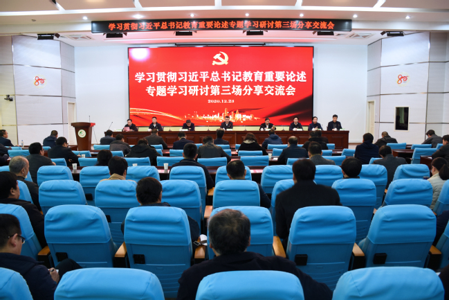 12月23日下午,我校在禧强楼学术报告厅召开学习贯彻习近平总书记教育重要论述专题学习研讨第三场校级分享交流会暨党委理论学习中心组(扩大)学习会,校领导、中层干部和教师代表围绕“好老师是民族的希望——坚持把教师队伍建设作为基础工作”这一主题,结合自身学习和工作实际作了分享交流。校党委书记严金静主持会议并讲话。校党委副书记、校长兰思仁,校党委副书记庄祥生、曾华平,校纪委书记邱应龙,校党委常委、副校长黄炎和,副校长郑宝东,校党委常委、副校长林庆藩出席会议。