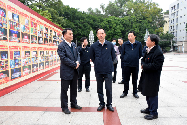 在先进人物引领教育英模广场(拓荒广场),李德金副省长认真听取了我校开展先进人物引领教育及“学院周”文艺活动有关情况汇报,对我校创新思想政治工作形式和载体,开展新时代师生理想信念教育和爱国主义教育表示充分肯定。他强调,要充分发挥先进人物引领教育作用,不断增强师生的爱党爱国情怀,推动学习贯彻习近平新时代中国特色社会主义思想走深走实。他要求,在做好相关教育活动的同时,要根据省委的部署和要求,高度重视做好校园常态化疫情防控工作,特别是科学谋划好寒假假期和明年春季开学前后的工作,合理安排师生分批错峰返校,确保师生生命安全和身体健康。