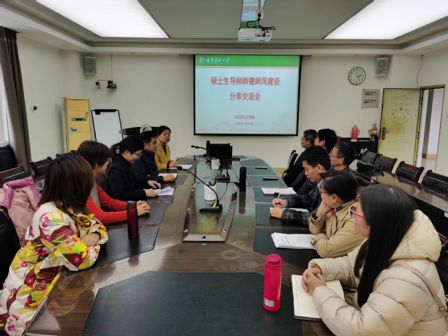 12月24日,马克思主义学院在明德楼613会议室开展硕士生导师师德师风建设分享交流会,学院领导班子成员、全体硕士生导师、教学秘书共同参会。交流会上,每位导师就学习贯彻习近平总书记关于研究生教育工作的重要指示精神、落实全国全省研究生教育会议精神、提高导师立德树人能力、提升研究生培养质量等方面进行了学习分享,并结合学院发展和自身做法谈了心得与建议。雷国铨总结表示,研究生教育肩负着高层次人才培养和创新创造的重要使命,接下来,学院将在推进导师立德树人考核和导师培训、研究生核心课程设置与建设、提升研究生科研能力与学位论文质量等方面继续探索,充分发挥马克思主义理论学科优势,为培养德才兼备的创新型人才、服务经济社会发展做出自己的贡献。