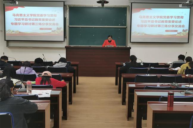 12月24下午,马克思主义学院于禧强楼206教室召开学习贯彻习近平总书记教育重要论述专题学习研讨第三次专题交流分享会,会议由学院党委书记雷国铨主持,学院全体师生参加会议。