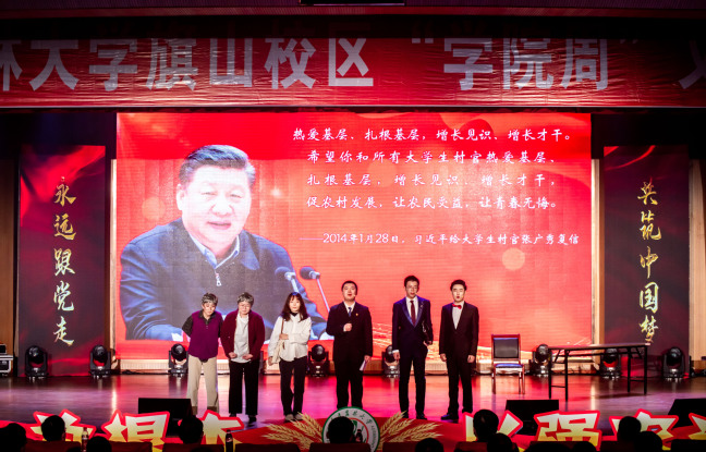 12月27日晚,艺术学院园林学院在旗山校区大报告厅举办以“我们都是追梦人”为主题的“学院周”文艺汇演。演出分“青春韶华”“立德树人”“复兴强国”三个篇章,通过歌舞、朗诵、情景剧、音诗画等多种表现形式,共同奏响艺园师生青春向党、赞我中华的激昂乐章。校党委副书记庄祥生,曾华平,校党委常委、副校长林庆藩,以及各学院、机关部门负责人和校区师生一同观看了演出。