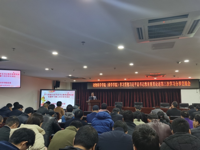 12月25日,动物科学学院党委在学院会议室召开学习贯彻习近平总书记教育重要论述第三次学习分享交流会,全院教职工参加。会议由学院党委书记黄毅军主持。
