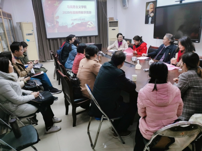 12月30日下午,马克思主义学院2020年度教师教学竞赛在禧强楼206教室举行。本次比赛由江夏学院马克思主义学院院长郭健彪教授、福建师范大学马克思主义学院陈新星副教授和福州大学马克思主义学院朱广琴老师担任评委,学院40余位教师现场观摩了比赛。活动由副院长林贤明主持。