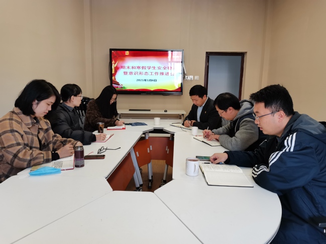 会议组织大家认真学习了全省2020-2021学年寒假放假和春季开学疫情防控工作视频会议精神,传达了学校有关会议精神,学习了学校期末和寒假期间疫情防控温馨提示要求,并重点就进一步贯彻落实校党委关于期末和寒假期间疫情防控和安全稳定工作进行再部署、再推进、再落实。