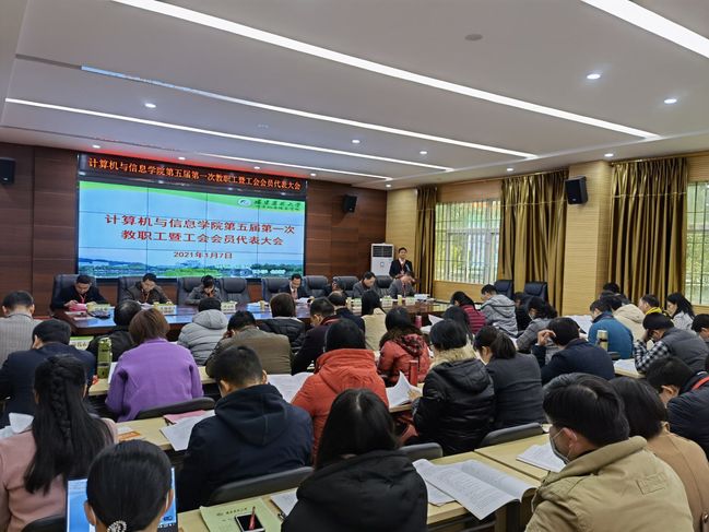 1月7日,计算机与信息学院在宝铃楼103召开学院五届一次教代会暨工代会,与会代表审议并一致表决通过了奖励性绩效工资改革、“十四五”发展规划等方案。学院党政班子、教代会和工代会代表、师生列席代表等共70多人出席了本次会议。