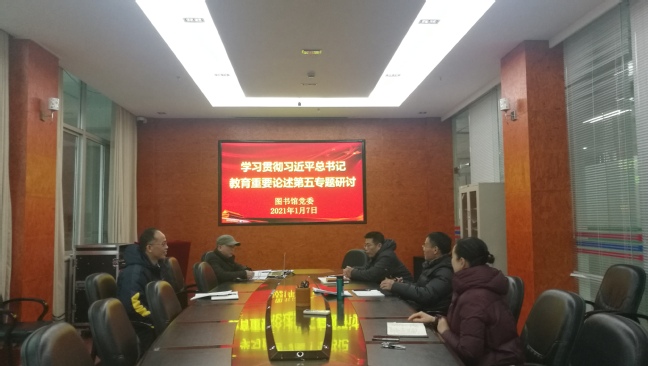 1月7日下午,图书馆党委召开理论学习中心组会议,开展学习贯彻习近平总书记教育重要论述第五次专题学习研讨。图书馆党委书记、馆长罗志雄主持,党委理论学习中心组成员参加。